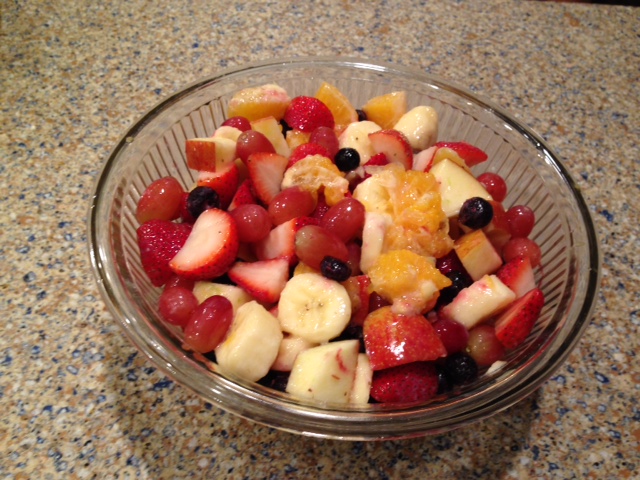 Mix lemon juice, honey, yogurt and sea salt in a small bowl. Place chopped fruit in glass bowl and pour liquid mixture over fruit and fold gently together. Chill for 20-30 minutes and serve.