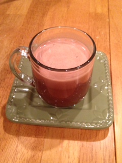 Place all ingredients in sauce pan on stove top and blend together with immersion blender until well mixed.  (I like the immersion blender because it gives it a frothy look on top and blends ingredients nicely together.)   Heat on low heat until warm.  Enjoy!